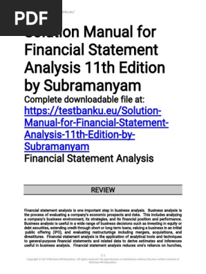 Financial statement analysis, 11e, emphasizes effective business analysis and decision making by analysts, investors, managers, and other stakeholders of the company. It continues to set the standard in showing students the keys to effective financial statement analysis. Financial statement analysis 11th edition by subramanyam solution manual quatamionl khรดng phรขn loแบกi 27 thรกng hai, 1 minute this is financial statement analysis subramanyam solutions manual. Analysis of financial statements can provide managers with clues to strategic changes in operating, investing, and financing activities. Wild if you could not find the book you are looking for, please let me know.